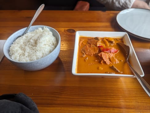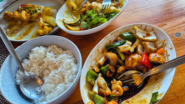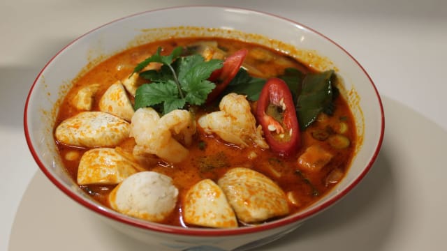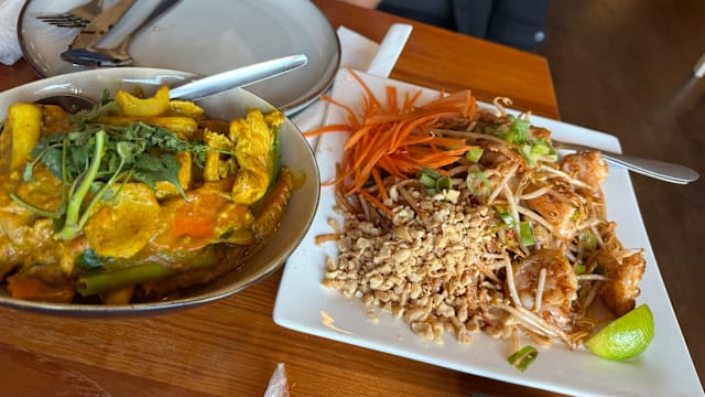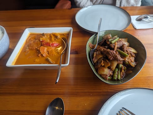 3/10The staff is too careless to be working in the food industry. I specifically asked if they could make a curry with tofu instead of chicken and the waiter nodded and agreed, ended up serving me pork instead. I am a vegetarian for religious reasons and I asked twice if the food I ordered had any kind of seafood, meat or shrimp paste, the waiter said no it doesn’t. The first bite I took I knew the taste was weird so I asked him what’s this and he said it’s pork. I didn’t make a fuss and asked him to bring me what I ordered. When he returned I thought he came to apologise for serving me the wrong dish but surprise surprise he said I need to pay for it since I took a bite and blamed me for not ordering it correctly, “I thought you had asked about the second dish”, like yes I am a vegetarian for 1 dish and eat everything for the rest, started to think he is daft. I politely told him I am not paying for something I did not order and I take the case very seriously that the first order of business that comes to the waiter’s/owner’s mind is I need to pay for it. They were arrogant and completely unapologetic about serving me pork when I mentioned I am a vegetarian. They ended up serving me the tofu curry eventually, perhaps common sense from someone had prevailed in a kitchen run by imbeciles. The whole experience was terrible post the incident and the restaurant did nothing to make us feel that they were sorry. Even towards the end they were shrugging it and said “it’s alright”. No sir it is not alright, never returning and letting everybody in my epicurean circle know about their pathetic service and ridiculous staff