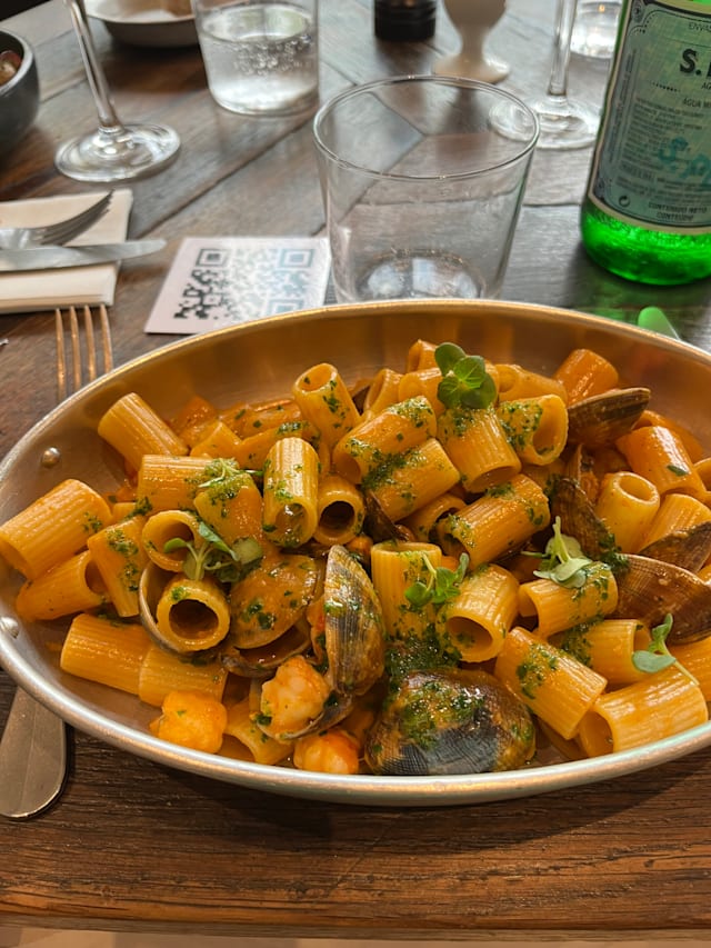 10/10Italian in flavor and preparation. We shared a pizza as an entree. Beautifully cooked thin crust and a tomato sauce that tasted as if it was prepared from fresh ingredients. My grilled octopus served with cooked seasonal vegetables was tender and the addition of toasted buckwheat gave the entire dish a crunch. Penne with a cream and cheese sauce was perfect.