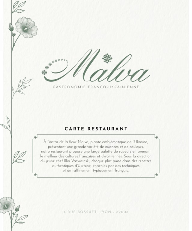 10/10This is an excellent French restaurant. Make no mistake. Malva offers fine French food while showcasing Ukrainian style dishes. Each of my wife and my 3 dishes was delectable. The food is delicate and light. The ingredients were really fresh. Everything was delicious. This restaurant alone gives us reason to return to Lyon.