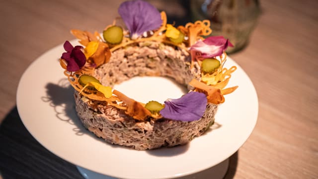 10/10The food is beautiful, tasty and creative. A short menu, elegant choices with unexpected yet simple ingredients and preparations, fresh vegetables handled with love, excellet meat and fish. A lively dish with tapenades and an eggplan puree for sharing, a tuna tataki with oriental flavours and chicken dish (A Ukranian staple, rivisited) with a fantastic pea-based side); a chocolate and beetroot dessert we liked a lot. Bread is baked in-house ( gluten-free available AND good). The wine list is short and well thought, we had a Georgian white, very nice. The room is managed with grace, attention and a smile, the decor modern, the chairs comfortable, the overall experience greatly enjoyable. Prices within range.