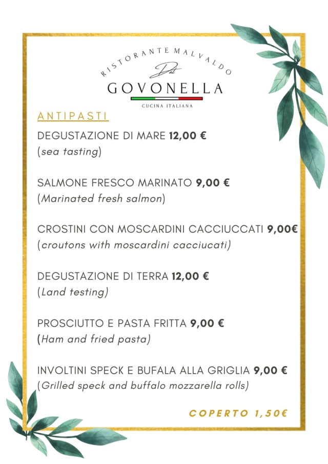Malvaldo dal Govonella is identified as offering italian cuisine.