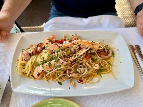 Had the house special pasta which was good. We were early doors and first in at 6.30 which didn't seem to please some staff, seemed a bit grumpy to start with but got over it. Excellent view of Etna from the corner just below the restaurant.