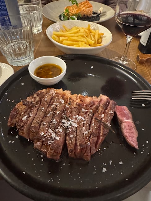5.5/10Now I understand why it was not busy. Very overpriced!! 35 euros for a piece of cold skirt steak. It was very lonely on the plate.