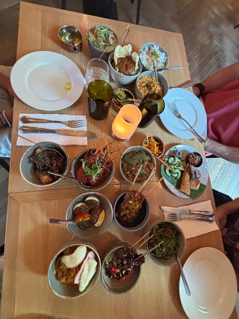 Dear Valeriia, Thank you for your perfect rating and for sharing such detailed feedback. We are delighted you enjoyed the variety of dishes, he complimentary starters, and the welcoming service and ambience. Regarding the spice level, Indonesian cuisine traditionally features bold flavors, though we adapt them carefully to suit a wide range of palates here. Your remarks are appreciated and will be taken into consideration. I hope to welcome you again for a better experience! Kind Regards, Eleni Tsolaki, Restaurant Hostess