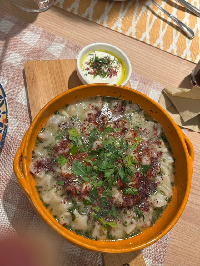 10/10My favourite dish manti and shakshuka together with a delicious juice. Enjoyed the caring service and recommend all mama’s soups and papa’s pastas. Enjoyed the dolmas on the side. Lovely vibe music playing in the back.
