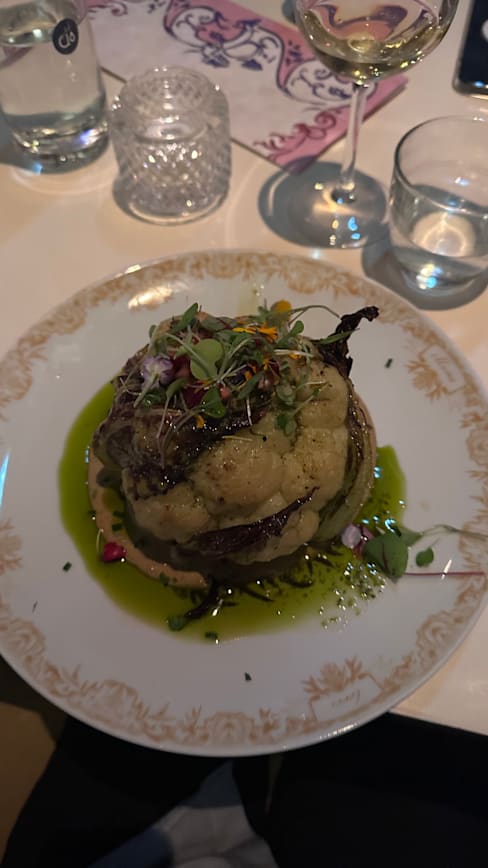 7.5/10This place looks like you get into a 1950 dinner in the United States and someone invited your granny to live here with her furniture, dishes, sofas and chairs. In the meantime your granny rented a room to a young disco sound and 1980 MTV videos super fan. That’s it !!! The food is like they hire and fire 3 different chefs before they finish the menu, and all of them make some twists on dishes of their predecessors. Hard to understand that nero the sepia linguini with shrimps can have tobiko eggs (yellow not black so probably a low cost substitute) lime and aneto (not sure if it’s the plant or the drink because I tasted or see none). The pasta was nice and not overcooked but need seasoning which we have on every table. It was not has bad as I was expecting, really ! The service was the fastest I’ve seen in a long time or ever and was nice, attentive and with care. My waiter barely speak any Portuguese so we need to move to English, which is becoming more frequently in Portugal. The room ambience is pretty nice, happy and warm. There is a DJ both and a big counter in the middle were the bar is and also an outdoor/garden where you can diner or enjoy the cigarette. You find a mix of young locals with mid age and seniors from abroad, probably visiting or staying in the just inaugurated hotel above. The prices are high considering this is not fine or upscale dining place but a informal and casual dinner. Couvert 4,5€. Starters goes from 11 to 24€ and main dishes goes from 20 to 27€. Dessert 6 to 7€. Wine by the glass 5,5 to 7€ bottles 22 (pretty bad) to 58€. This is a new trend to mark the wines wih huge margins which is unnecessary as portugal have the best and lowest price quality wines in the world. Considering all this is a great place to spent a night with friends or celebrate a birthday. Your meal would be from 30 to 45€ minimum. Lunch is a different menu and price with more affordable options starting on 12,5 complete lunch.