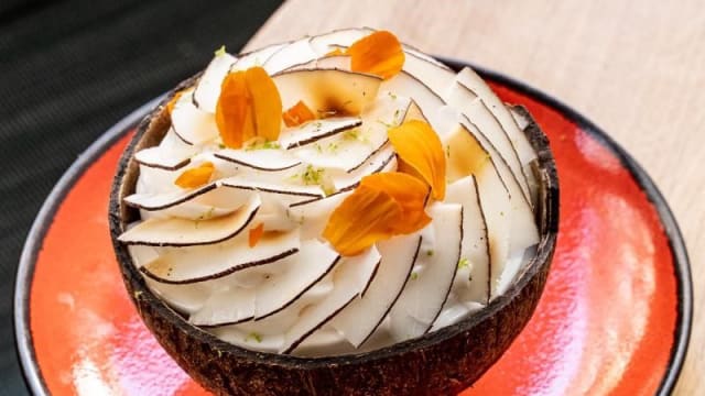 Île flottante à la nix de coco et citron vert