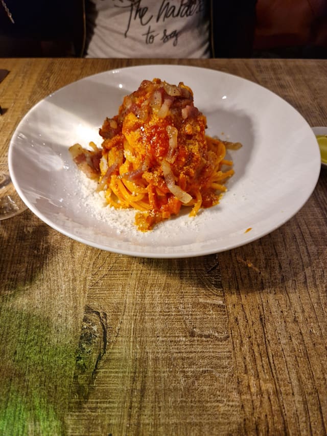 5/10Super disappointed. Pasta served tasted ok, but the guanciale was 100% fat. The margarita pizza was mediocre at best & not sliced at all, served as one big pie with only a butter knife to cut and not even a sliver of basil. She said, we don’t do basil on our margarita pizza???