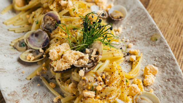 Maccheroni* al torchio di gragnano con frutti di mare locali e limone fermentato