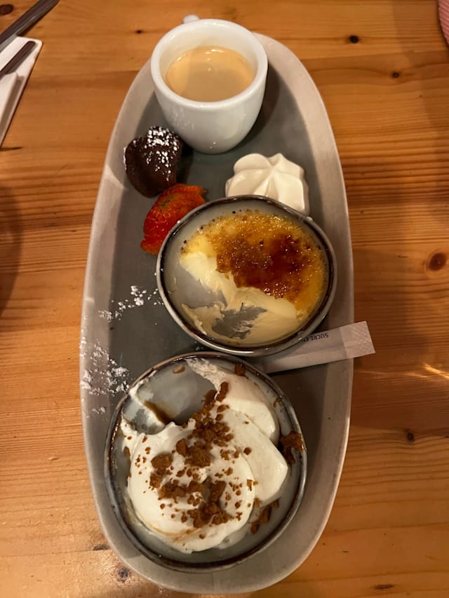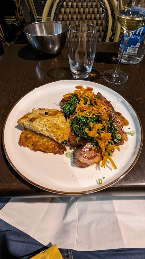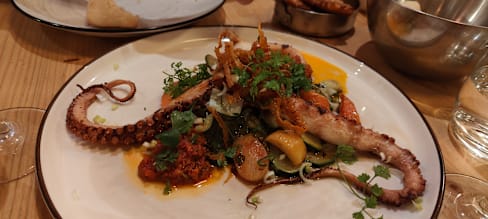 8.5/10Nice atmosphere and good service. The bread is good. The foie Gras was superb. My husband likes the steak with bone marrow and my son enjoyed his duck breast. The octopus I ordered was not the right texture and a bit bland though.