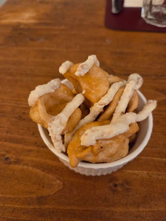 9/10we were there twice, the first time without the fork and today with the fork. we came back bc the first time it was really good, we had the platter with the drinks and it was delicious and at a relatively fair price. thr second time, today, it dissppointed with the food: we had "involtini di carne" and the meat was not tasty at all and it had so many potatoes that were not tasty either! then we had tasty orechiette with horse meat and it was really tasty but it was colder than ir should have been. maybe our expectations after the first time were too high? we'd likely rather try another place next time.
