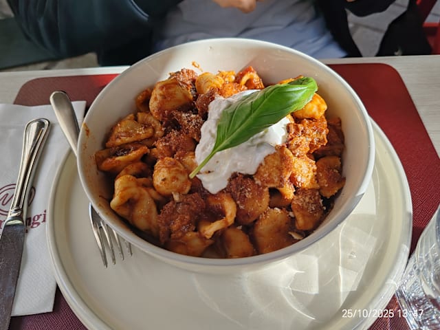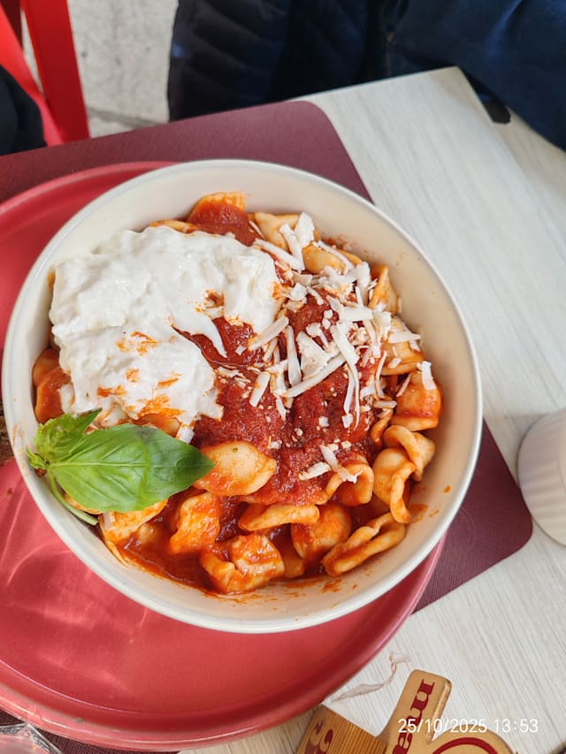 10/10The food and the atmosphere: our table was located outside and we enjoyed the meal. Everything was tasty: the first course was very tasty warm cherry tomatoes served with burrata, and we chose orrecchietta as main course and it was delicious. Kind and fast service. We recommend it.