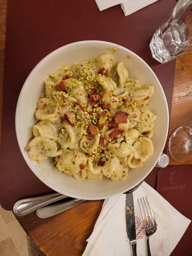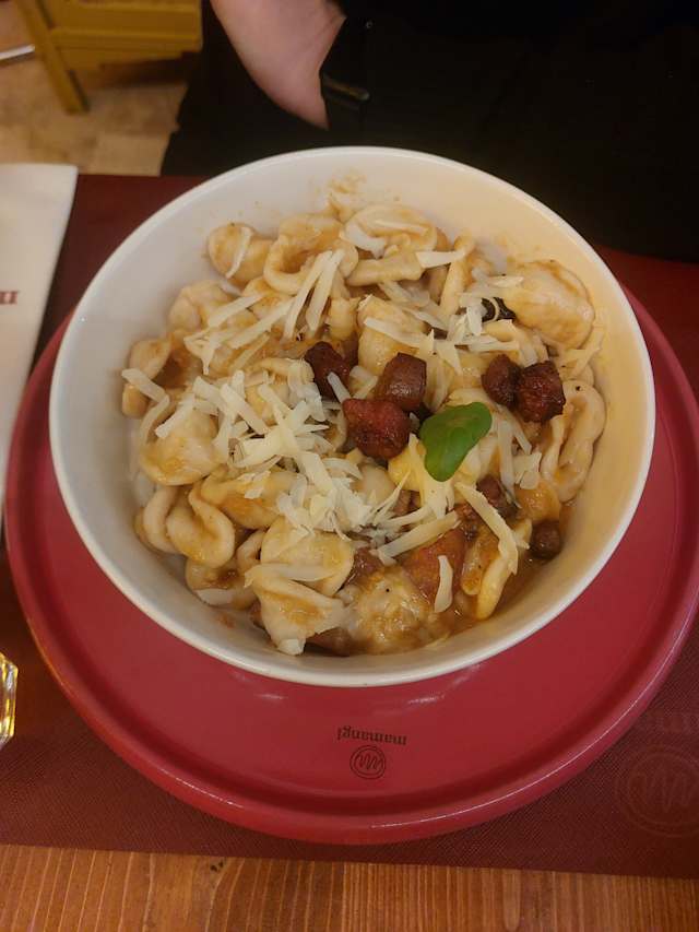 7.5/10It was ok, the bruschetta mamare was good but the bread was extremely dry, i don’t think it was fresh, it felt like it was a couple of days old before being toasted. The Octopus Orecchiette was mediocre in my opinion, the flavour just didn’t combine well. We stayed on the terrace and there was a bad smell like sewage at some point, it went away after like 5-10 minutes but still it was unpleasant.