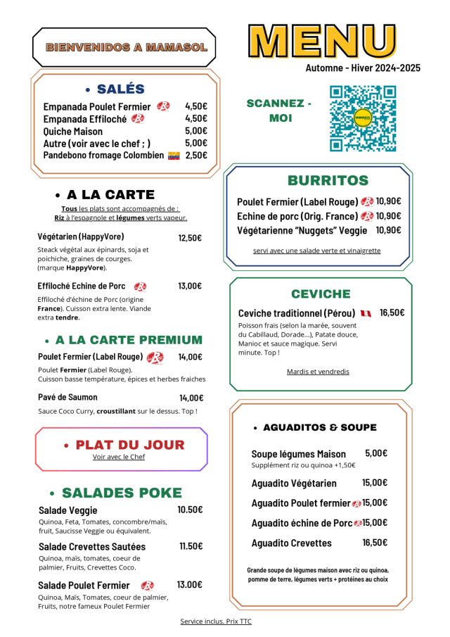 Dear Bianca, Thank you so much for your fantastic 10/10 review and your kind words! 🌟 We’re thrilled that you enjoyed both the food and the service. Damaso and the entire Mamasol team truly appreciate your gratitude—it means the world to us. 💛 We look forward to welcoming you back soon to try more of our authentic dishes and maybe even discover some of our new drinks or daily specials. Don’t forget to check out our updates on Instagram and Facebook for the latest news and offers. 📍 Mamasol – 97 rue Jean Bleuzen, Vanves, France Once again, thank you for choosing Mamasol. We hope to see you again soon for another unforgettable culinary experience! 😊 Warm regards, The Mamasol Team ❤️ Love to Brazil
