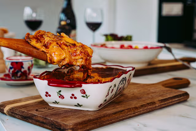 - Béchamel, pâte fraîche, poulet mariné, chèvre, miel, emmental