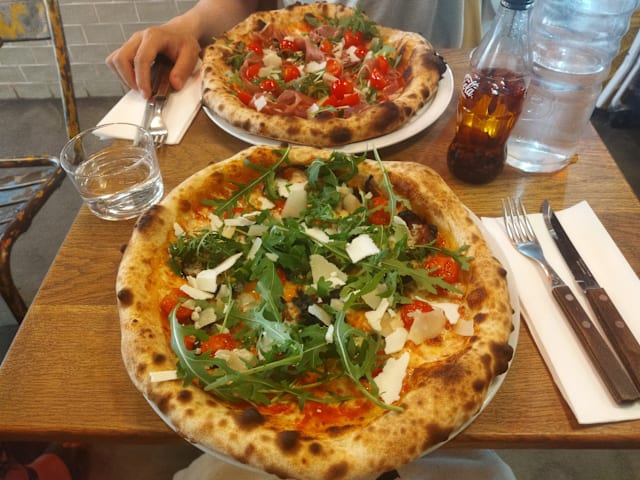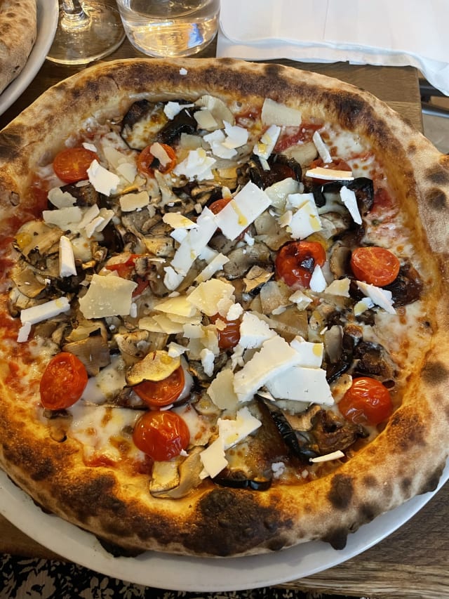 9.5/10The crust of this pizza probably is one of the best I've ver had. The toppings were good, but a crust of this quality would deserve exceptional toppings. Service was was relaxed, friendly and fast, we had a very nice time.