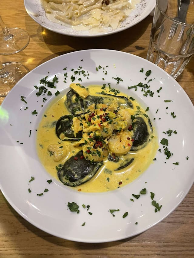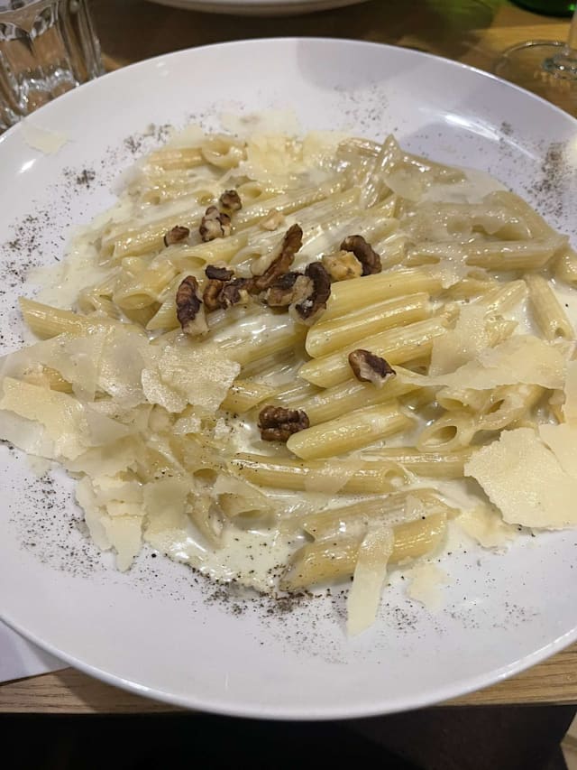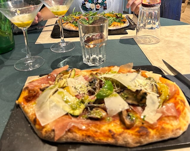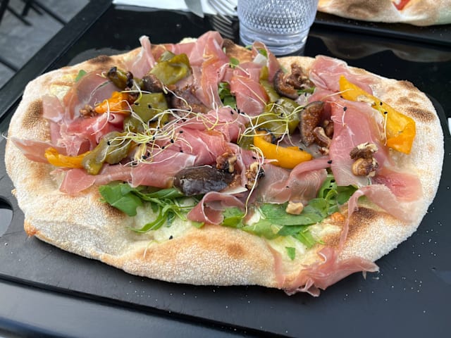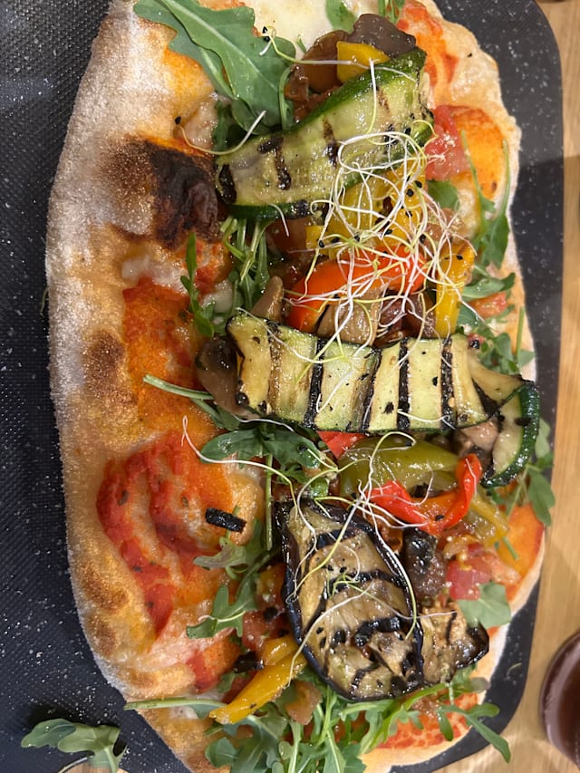 10/10Delicious pizzas with generous amounts of toppings & the tiramisu for dessert was, as always, divine. We were seated indoors which was very hot but we enjoyed our evening out and my daughter was impressed our waitress recognised her from a previous visit many months ago. The staff were working hard serving customers inside & out but were always calm & friendly & didn’t bat an eyelid when a passing friend decided to come and join our table for a drink.