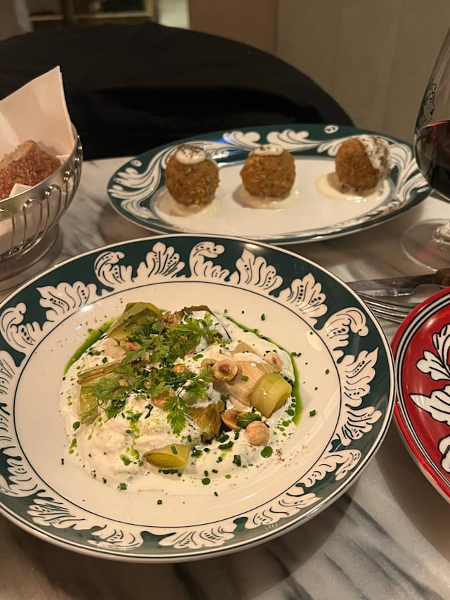 Polpettine de parmesan et fromage branzi, mayonnaise à la truffe, truffe fraîche de saison râpée
