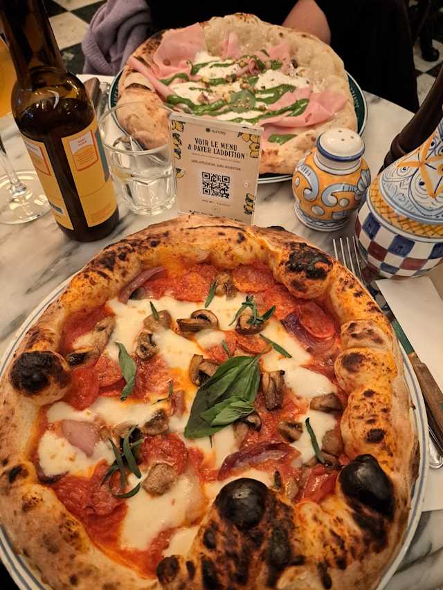 - Sauce de tomates san marzano aop, mozza fior di latte, parmesan, basilic