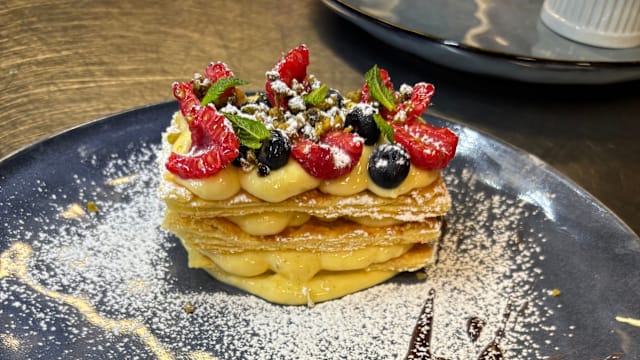 Pâte feuilletée fourrée à la crème pâtissière et fruits rouges de saison