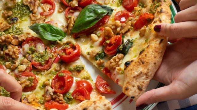 Pomodoro san marzano DOP, fior di latte di agerola DOP, grana padano gran riserva stagionato 30 mesi, pepe, basilico, olio extravergine
