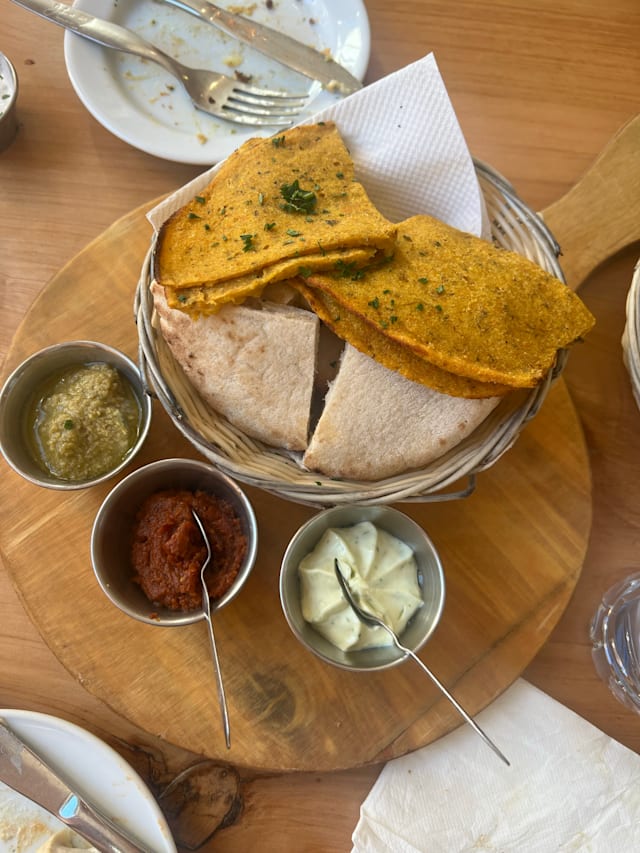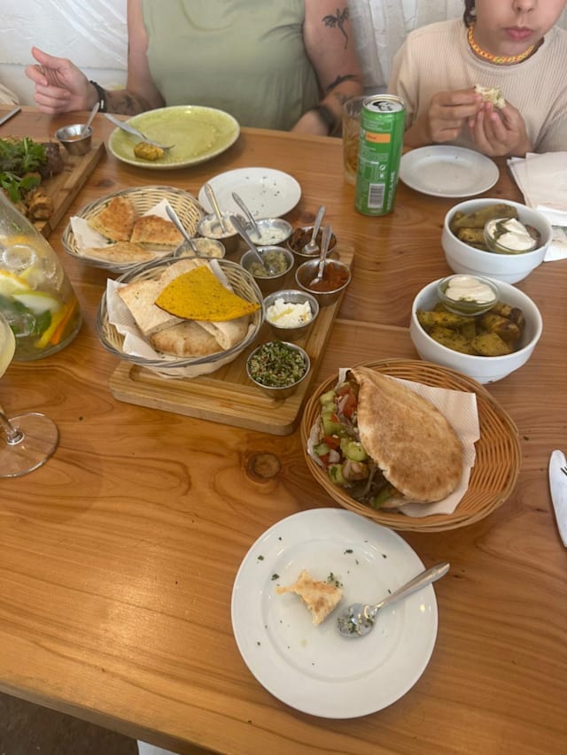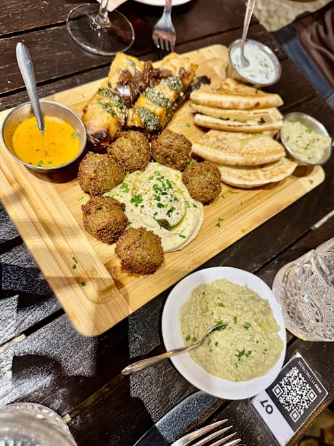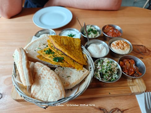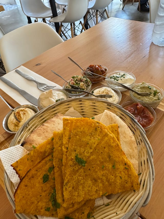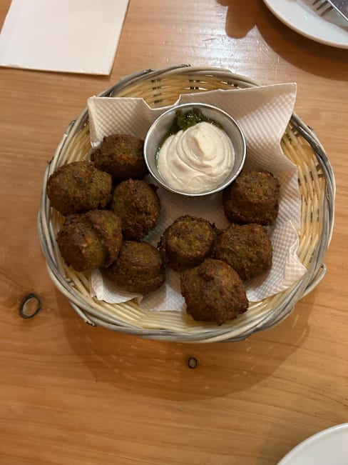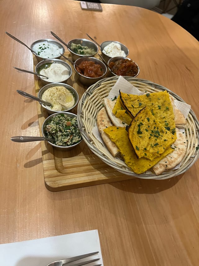 4/10We visited for a birthday meal and unfortunately had a very disappointing experience. It took 25 minutes before anyone came to take our order, despite signaling to the server. We ordered the Mezze Trio, Shakshuka, a Chicken Bowl, and some drinks. When the food arrived, the Shakshuka was especially concerning — the egg was completely black inside. When we asked about it, the staff insisted it was “normal” because of the spices, which didn’t seem right at all. The Mezze Trio also arrived without any bread. Instead of correcting this, the server asked if we wanted to order bread separately, which seemed absurd since bread should naturally accompany a mezze. To make things worse, the menu listed the Mezze Trio at €10.50, but we were charged €12 plus €2.50 extra for the bread. After all that, the food itself was bland and lacked flavor. Overall, the entire experience was disappointing, and I would not recommend this place.