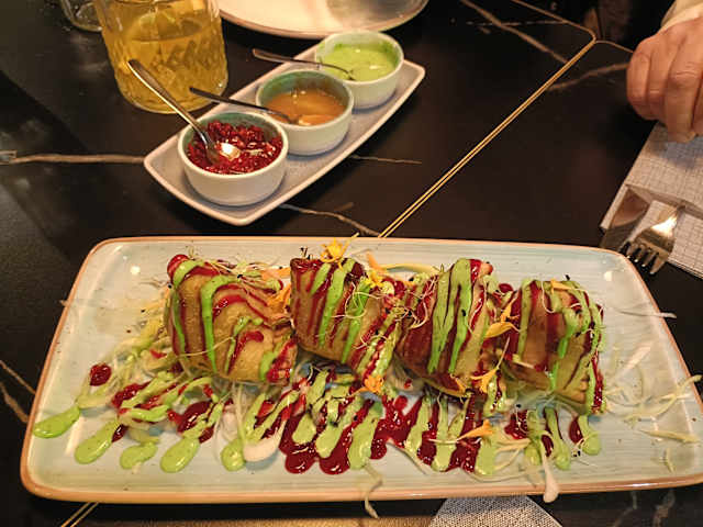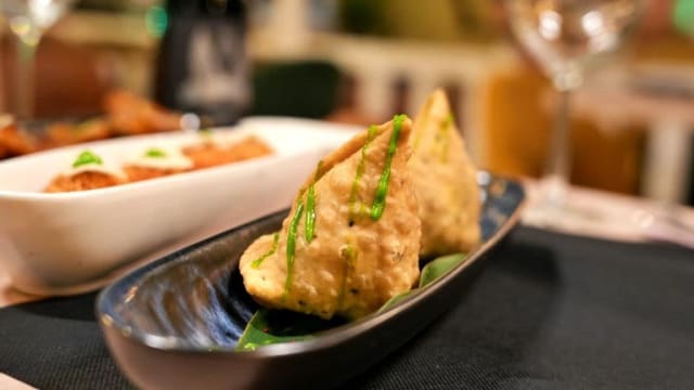- (mix de samosas, onion bhajee y chicken pakora)