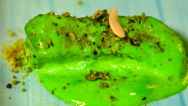- (langostino crujiente con salsa verde)