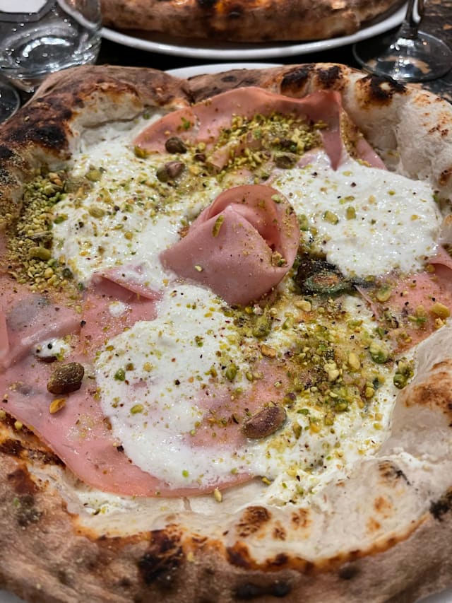 5/10The mozzarella and tomatoes were underwhelming. No taste at all. We waited for 1.5h to get our pizzas. We reminded the staff twice about our order before we got it. The stracciatella on the mortadella pizza was solid when we got the pizzas.
