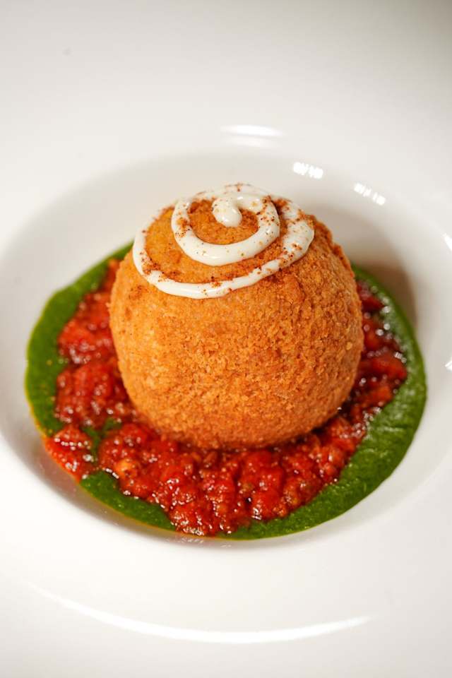 - Baccalà cotto al carbone, patata affumicata, gelato di olive
