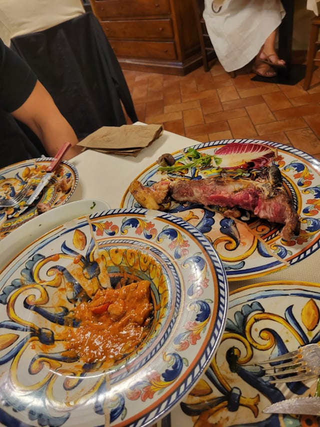 10/10Bistecca can be ordered from 600-700g per person, or 1kg for two people to share. However, since it includes the T-bone, it wasn't a huge amount. The amount of side dishes for 6 euros was also quite good. The steak tasted really exceptional!! The atmosphere was quiet and relaxing, so I was very satisfied! It's right next to the Accademia Gallery, so please visit.