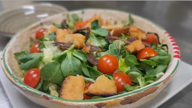 Lattuga, pomodoro, bufala, tonno, olive taggiasche e scaglie di grana