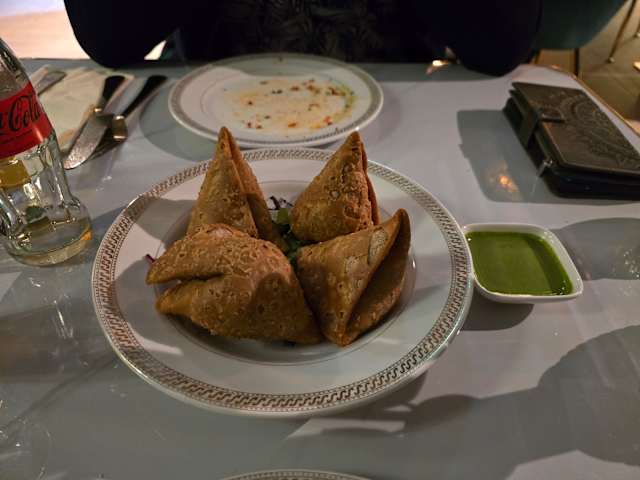 - Samosa, gedroogde groene erwten, gesnipperde ui, tomaat, verse koriander met citroensap