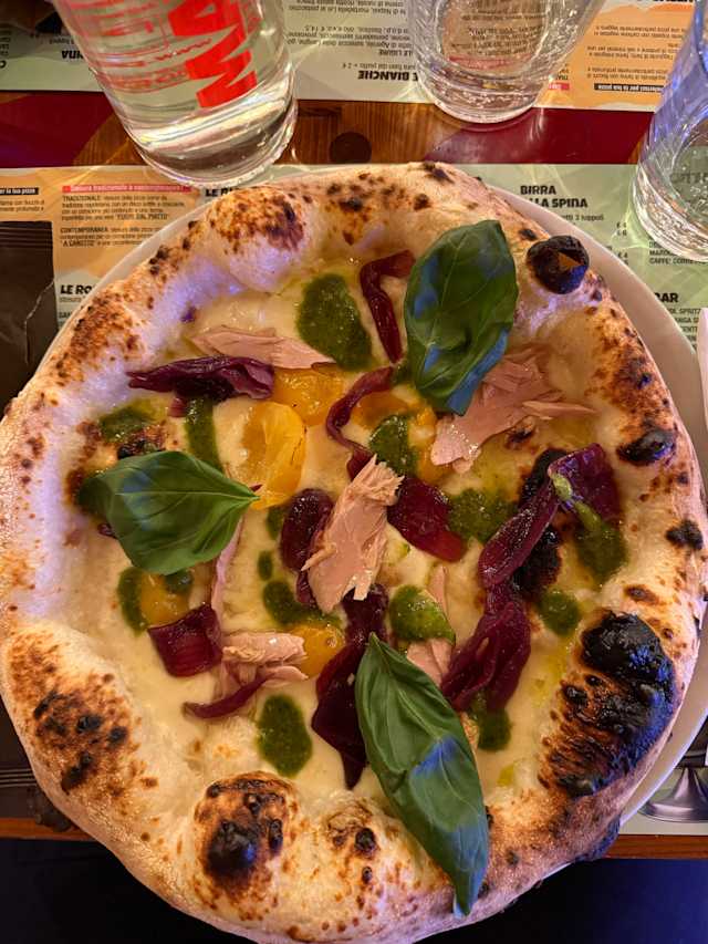 9.5/10We have eaten at many pizzerias, the pizza dough was the lightest and tastiest that we ever had. We would have rated the pizzas a 10, however, all the toppings on the pizza were just too minced, therefore the toppings didn’t have an intense flavor. We had the Albisola and Grinzane Cavour.
