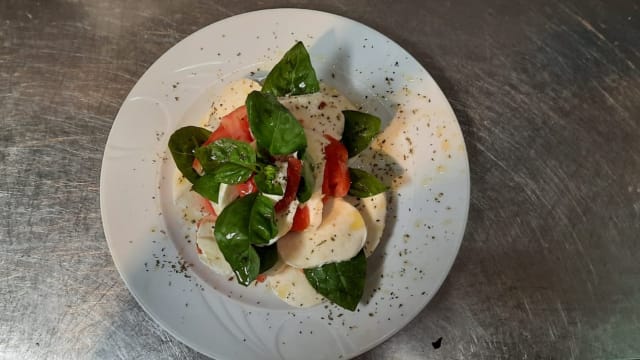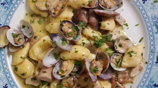Insalata di mare, salmone marinato, bruschetta con vongole, polpo e patate, alici marinate, polenta con moscardini