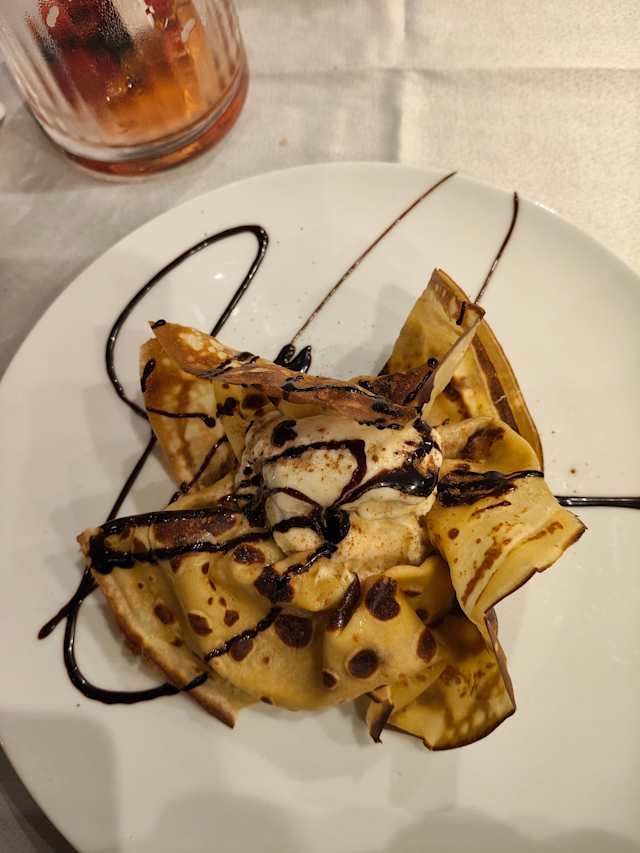 - Crepe com Gelado e Decoração de Chocolate