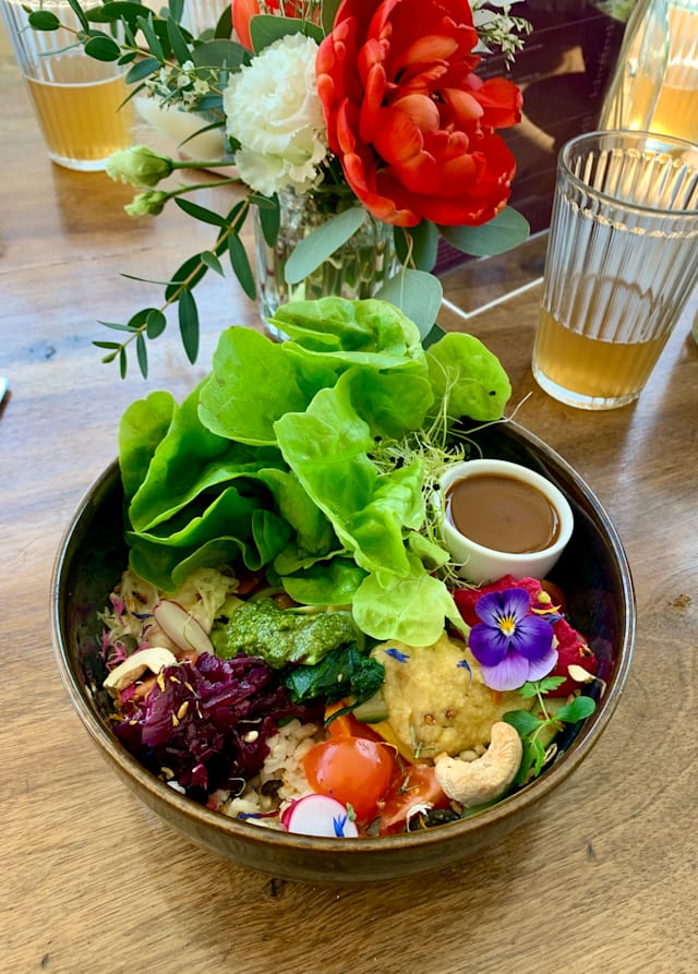 8.5/10The place is simple and zen. Not many tables. Very organic. All food is organic. However, no fresh juices on offer considering it’s an organic place. Food was good. No decaf coffee was a minus. The play du jour which was fish was delicious. Great price ratio