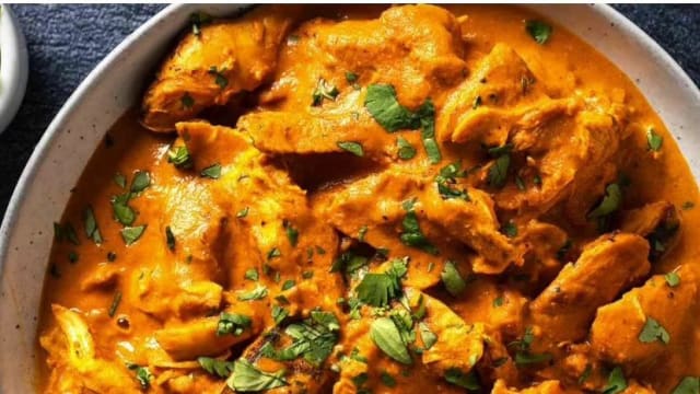 Roasted and marinated chicken tikka breast pieces in a spiced sauce with the famous tikka masala