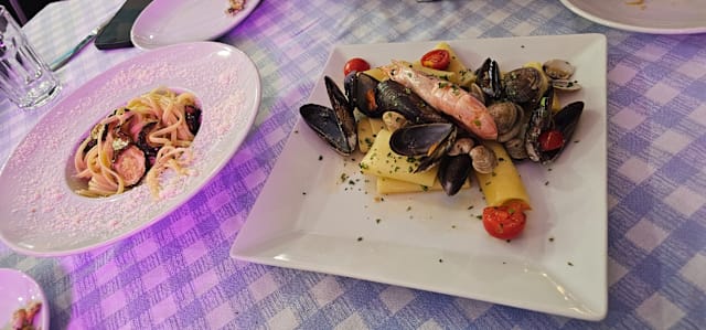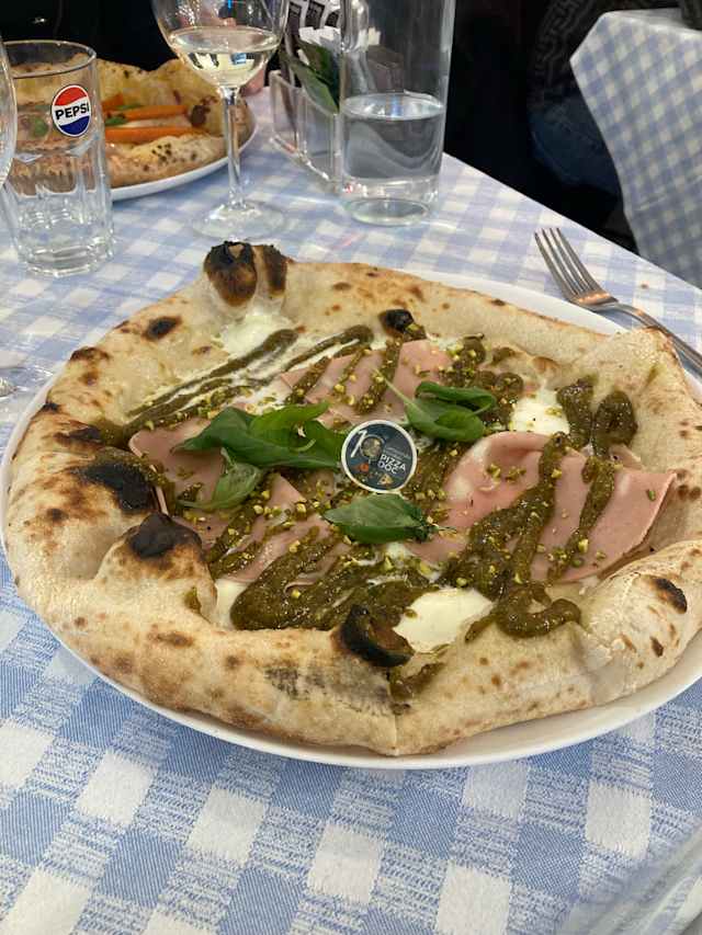 8/10Good quality pizza. A bit slow the service and sometime lacking (we asked the dessert menu, but the server didn’t bring us and after 6-7 min decided to leave) Nice outside area, very pleasant after sunset, but many people smoking; in hindsight would be better to stay inside to avoid eating tobacco as additional topping Reasonable pricing. Note that in the pizza menu the prices printed next to the pizza are misaligned, therefore you think the price for your choice is 10.90E, but instead is the line above and is 12.90E instead