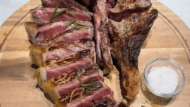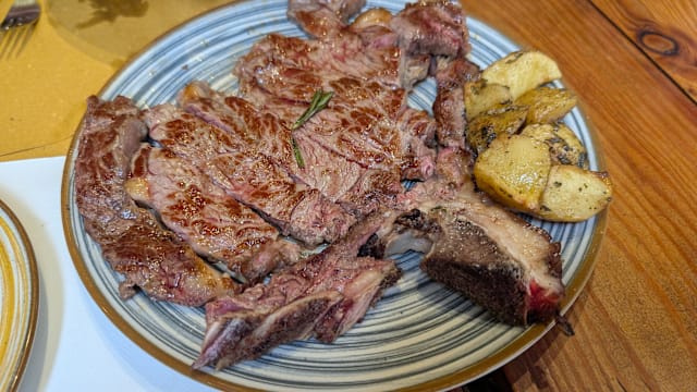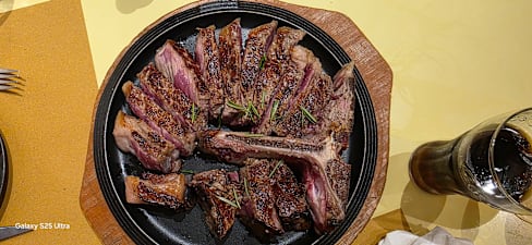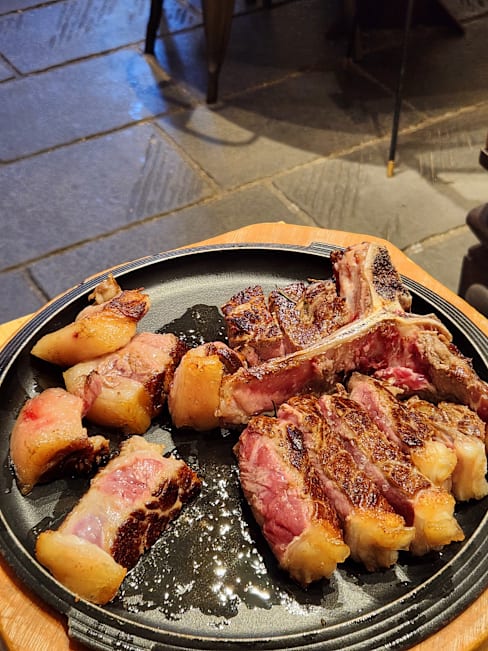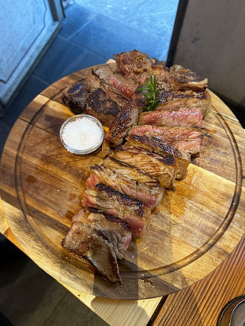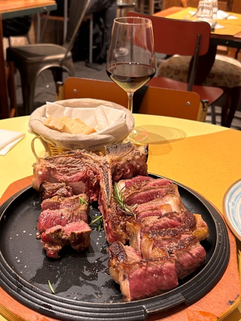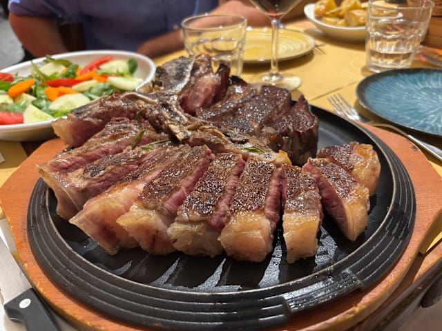 9/10My family and I had a tasty dinner at Manzo with Pappa al pomodoro e Selezione di pecorini as shared starters, followed by an amazingly cooked IGP Chianina T-bone steak and perfectly accompanied by a Ruffino Chianti. Staff were very welcoming and supportive. The location is nice, well decorated and the kitchen is open … you can see your steak on the grill! The air conditioning was the only minus, by the way in a very warm evening! Out of plenty of good places for a Fiorentina in Florence, that’s a very good choice and we’ll come back next time we are in town!
