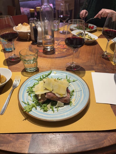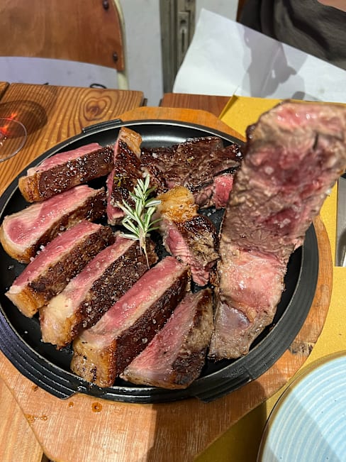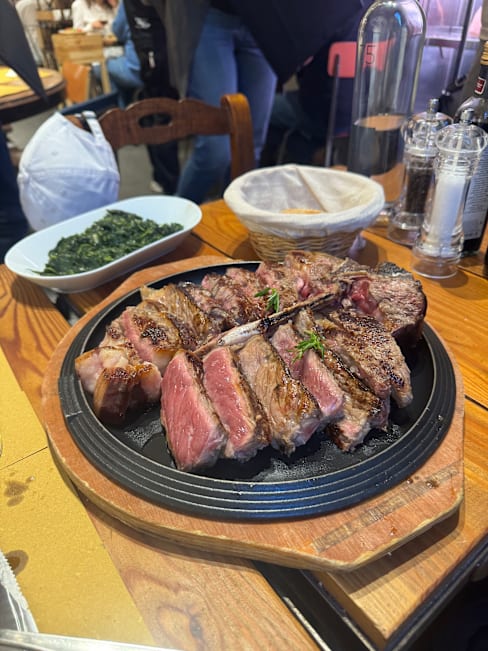 10/10My friends and I wanted a nice steak dinner for our last night in Florence and this place was a 2 minute walk from our Air Bnb. We made a reservation for 8:30 and got in right away when we arrived. Our host and server were warm and welcoming and helped us answer any questions about the menu. The steak was absolutely delicious, well seasoned and cooked perfectly! Highly recommend this for when you want a nice steak but you don’t want to wait over an hour like most of the other steakhouses in Florence.