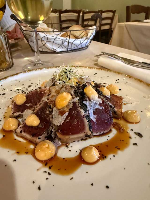 Dear Emmanuel, we are sorry that you had a negative perception of the service. We would like to clarify that we never mix different wines: if a bottle is not enough to fill a glass, we simply complete it with another bottle of the same label, as is standard practice in enology. We hope to welcome you again and offer you a better experience.
