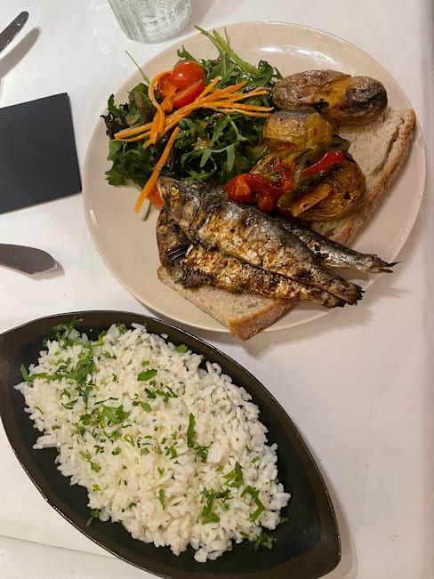 9/10Good croquettes as an appetizer. Excellent and very tasty fish rice. The serving was enough but quite less generous than one might normally find at Portuguese restaurants. Taking into account the Fork discount the price was reasonable. Wines are too expensive,: a wine glass is priced at one third the price of the bottle (rather than the usual 20-25%).