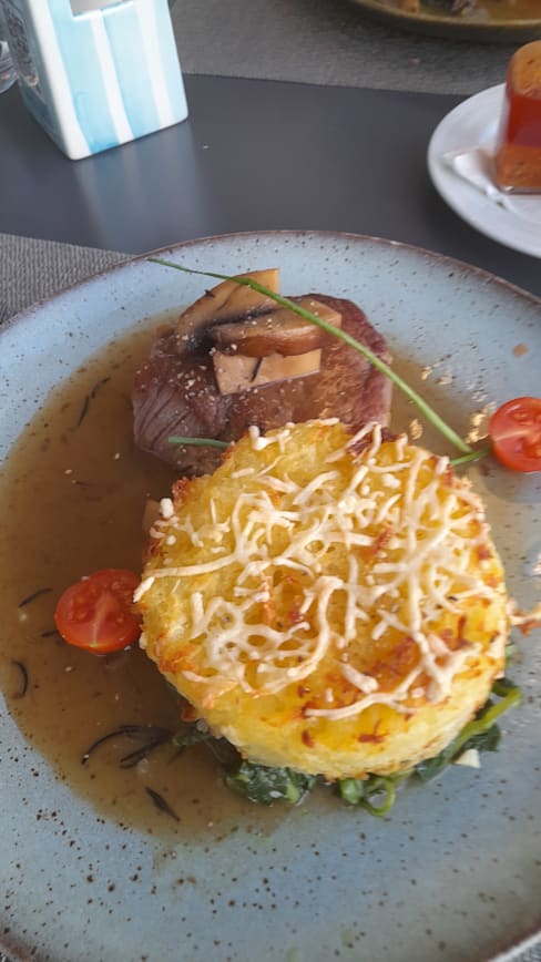 10/10Beautiful place, good shrimp risotto. Nice view, in front of the beach. Waitress nice and always Watching. I will come back without a doubt. There is a hotel too