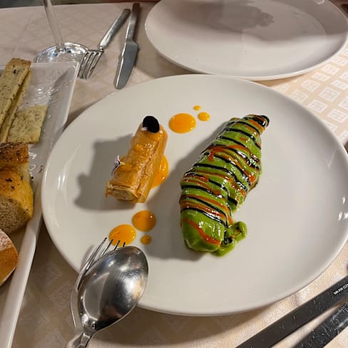 10/10Lovely service and super creative plating! Food was of course delicious! Why did we ever pay for overpriced Michelin star meals in Milan in the past, I don’t know! This meal was so super yummy and really good value for money…. The complimentary breads at the beginning of the meal were so delicious especially when paired with the lemon butter. Do not try to diet here, it is not possible! Every dish was so lovingly prepared and perfectly seasoned, we finished every single morsel!
