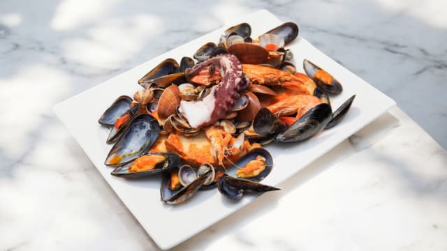 (Olio evo, frutti di mare, aglio, pomodorini, basilico, prezzemolo)
