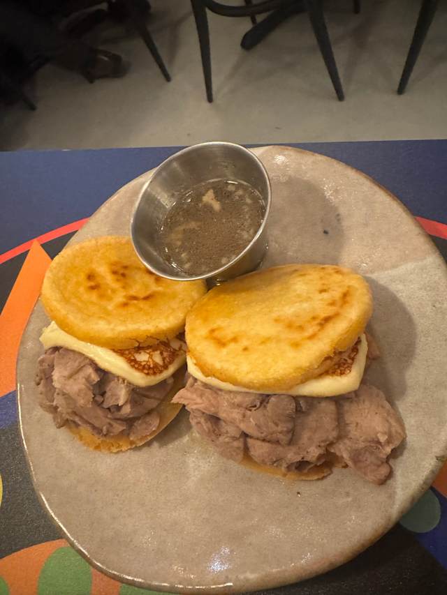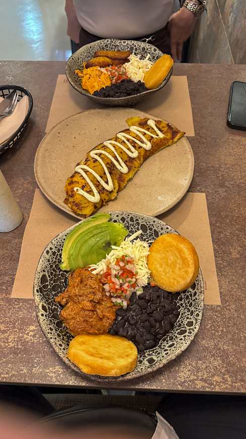 10/10Nice & quick service. Delicious empanadas (especially and surprisingly the seafood) and cachacones (fried plantain sandwiches). Arepas agüita de sapo were small, but tasty. Great cocktails.
