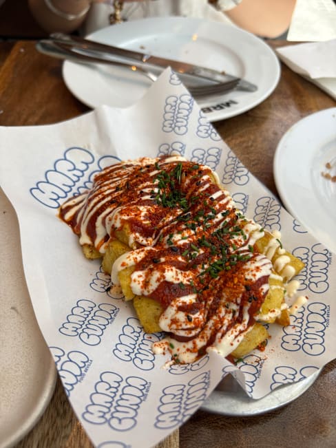 9.5/10Funky little restaurant with a busy and young vibe. The food was delicious and different and our waiter was passionate and so knowledgeable about the food he was serving. The chefs were on display and were theatrical, this produced a great atmosphere along with some good background music. Yes, it was a little more expensive than some restaurants but flavours were good and this was a young team trying to do something a little different. Coming from a background in hospitality my one observation was after finishing our main (with sides) and wine, we weren’t asked or offered anything else. My husband would have been persuaded into a dessert and I/we would then have had coffee. Just extras that would have been from the same cover and increased the bill. Overall, we really liked this restaurant and its food and would recommend a visit.