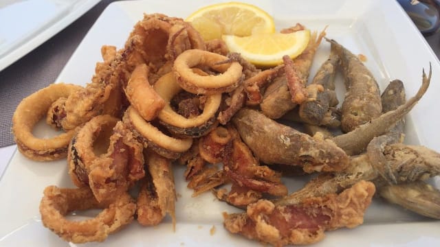 (Calamari, totani, gamberi, triglie, merluzzo, ecc in base alla disponibilità ittica)