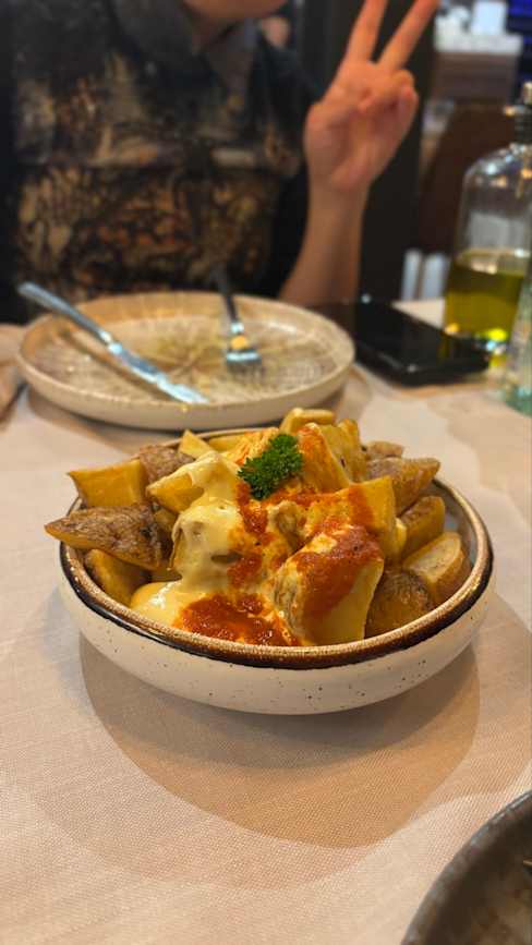 5/10The table service was not good, not very friendly, and the food wasn’t pleasing either, except for the starter, which was actually decent. But the main course—a pasta with a very basic tomato sauce that wasn’t tasty and felt like store-bought sauce—was disappointing, and the dessert was bad; we couldn’t eat it.